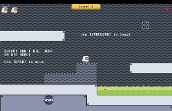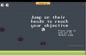 - gun with 1 bullet that reloads after every enemy killed with jumping or by a bullet.